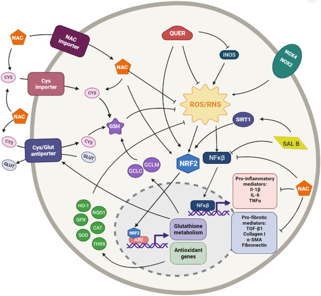 Кверцетинът е в състояние да намали оксидативния стрес и фиброзните процеси. В допълнение, няколко in vivo проучвания съобщават, че кверцетинът има антифибротично и противовъзпалително действие чрез модулиране на редокс баланса, вероятно чрез активиране на Nrf2, наред с други.